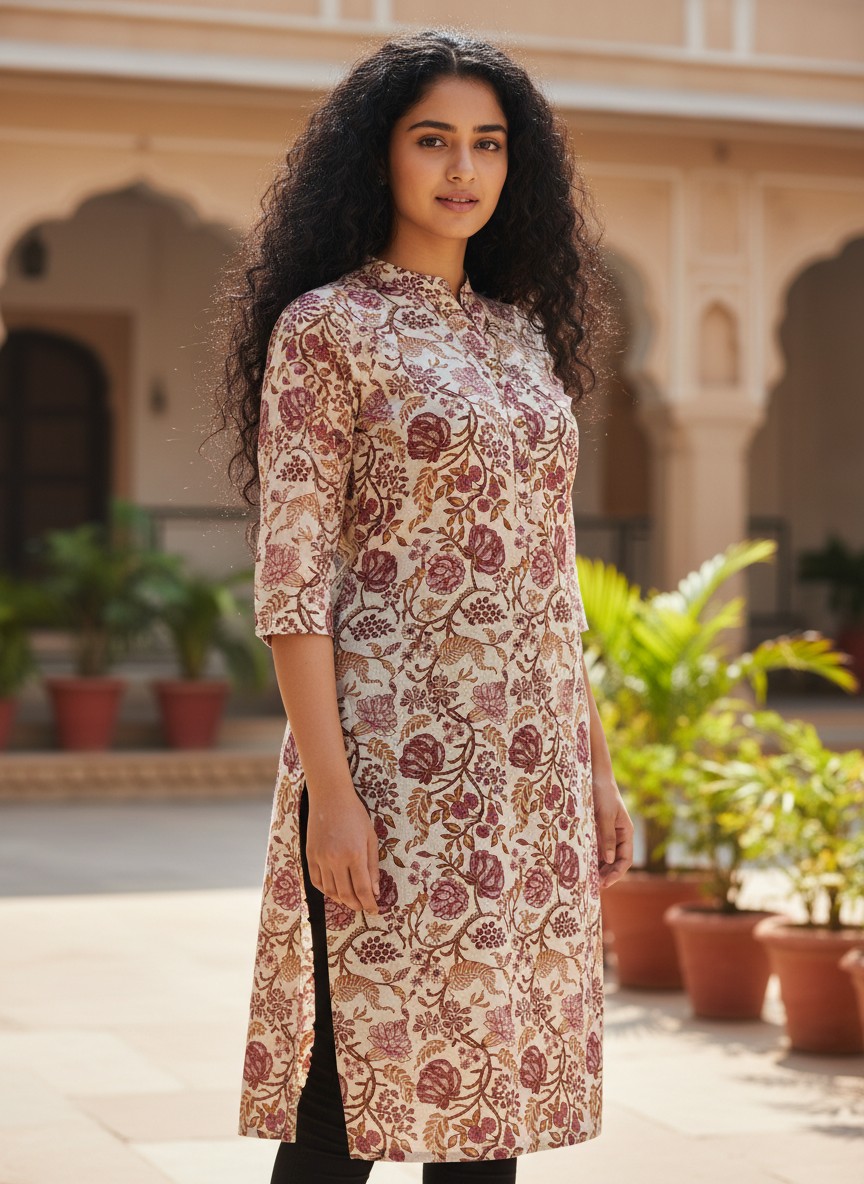 Design: The kurti features a modern and chic design, with options including vibrant prints, subtle embroidery, or minimalist patterns. Its contemporary style makes it a versatile addition to any wardrobe