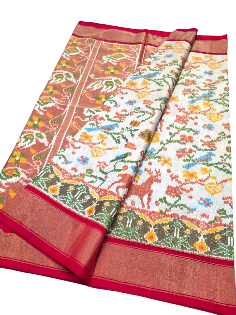 Reversibility: A true Double Ikkat saree looks identical on both sides. If the pattern is blurry on the back, it is likely a Single Ikkat or a print.