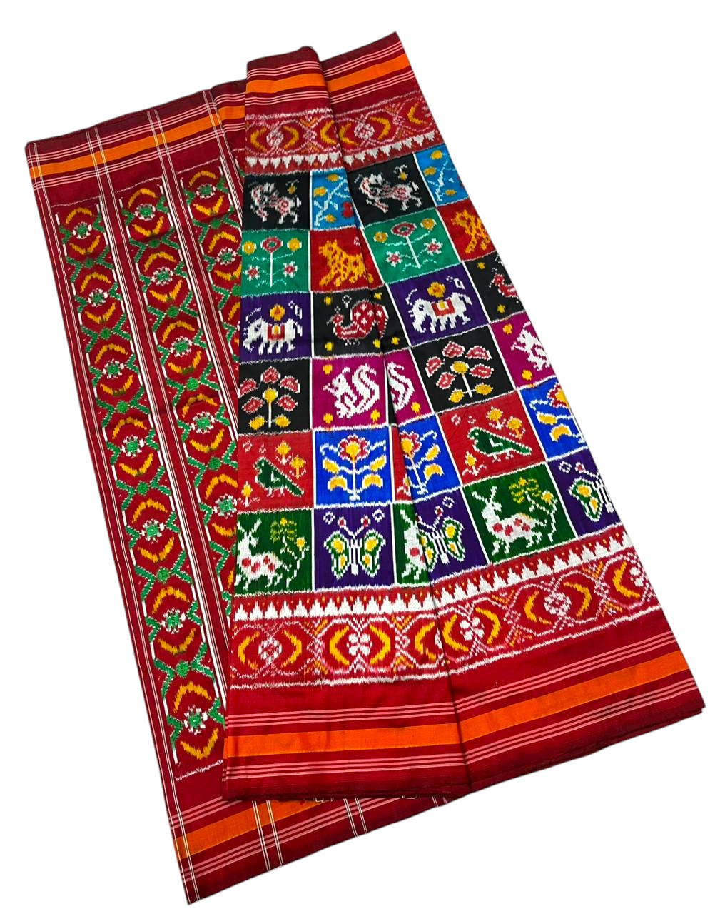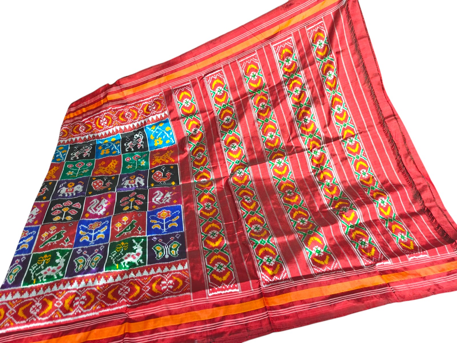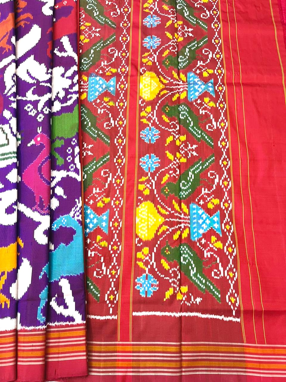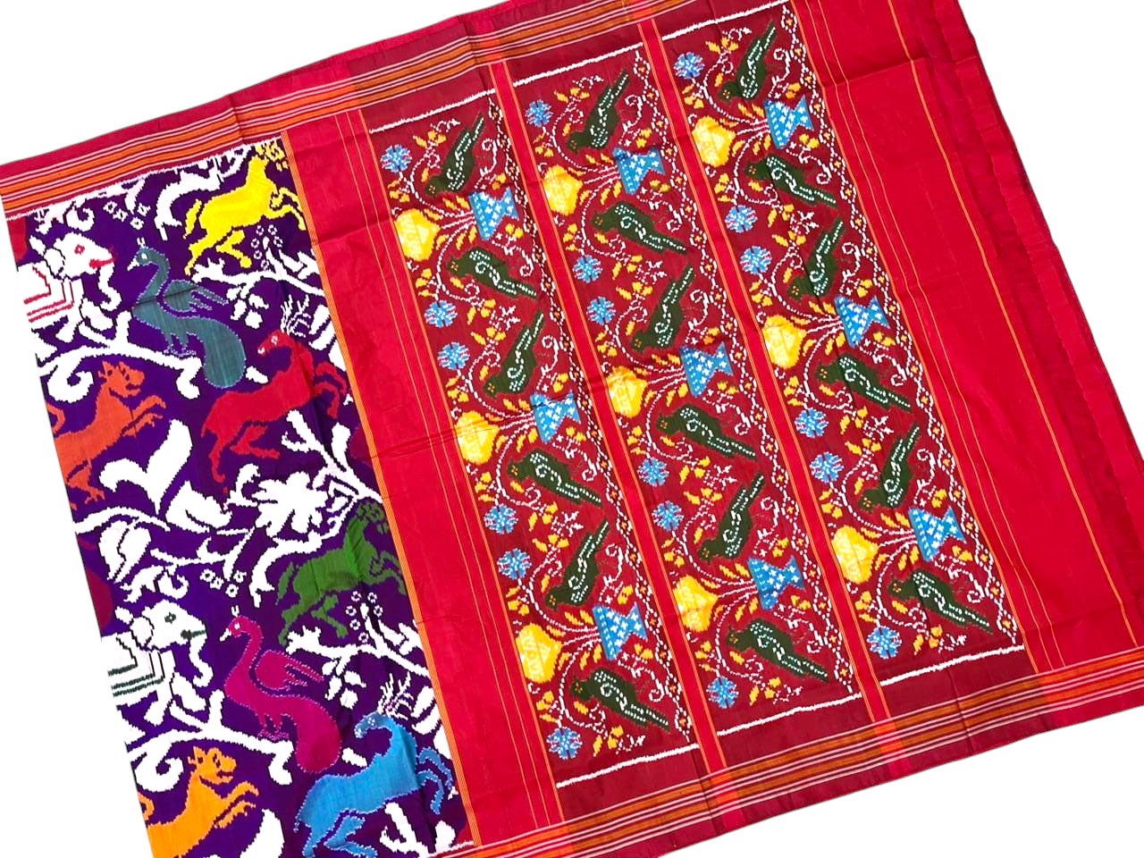 Double Ikkat Complexity: This technique is often compared to the famous Patola of Gujarat. Because both threads are dyed, the pattern is equally vibrant and visible on both sides of the fabric.
