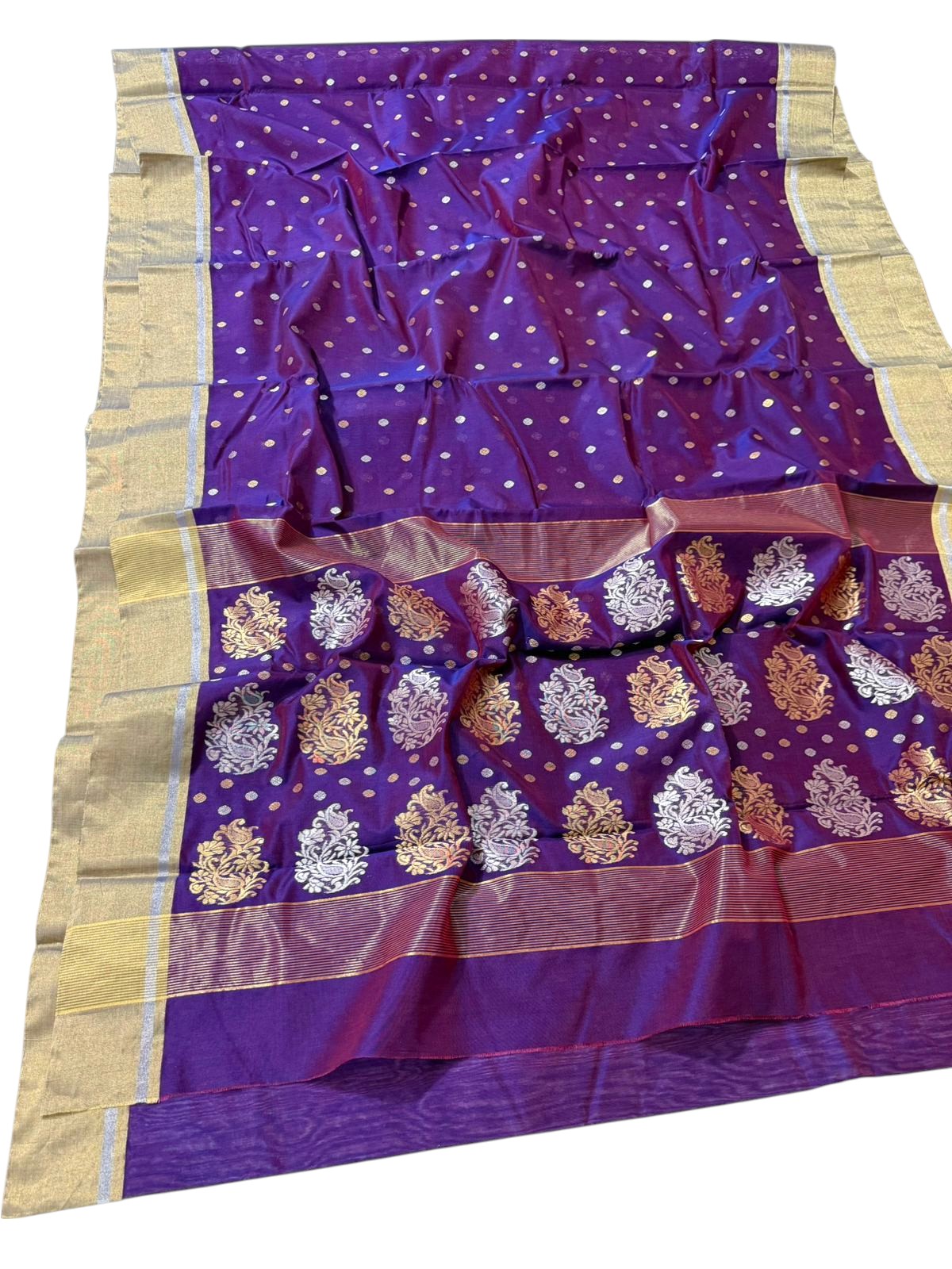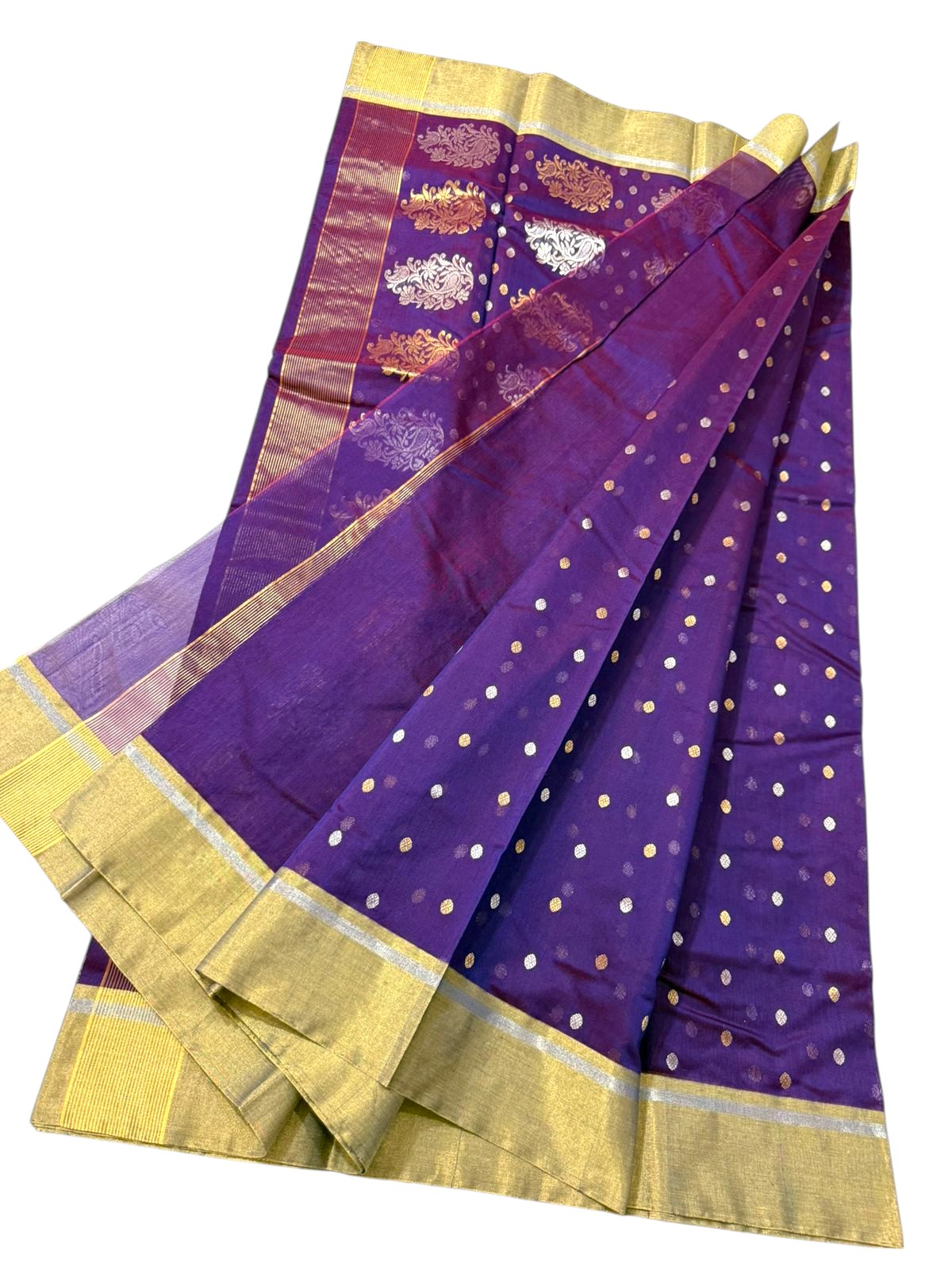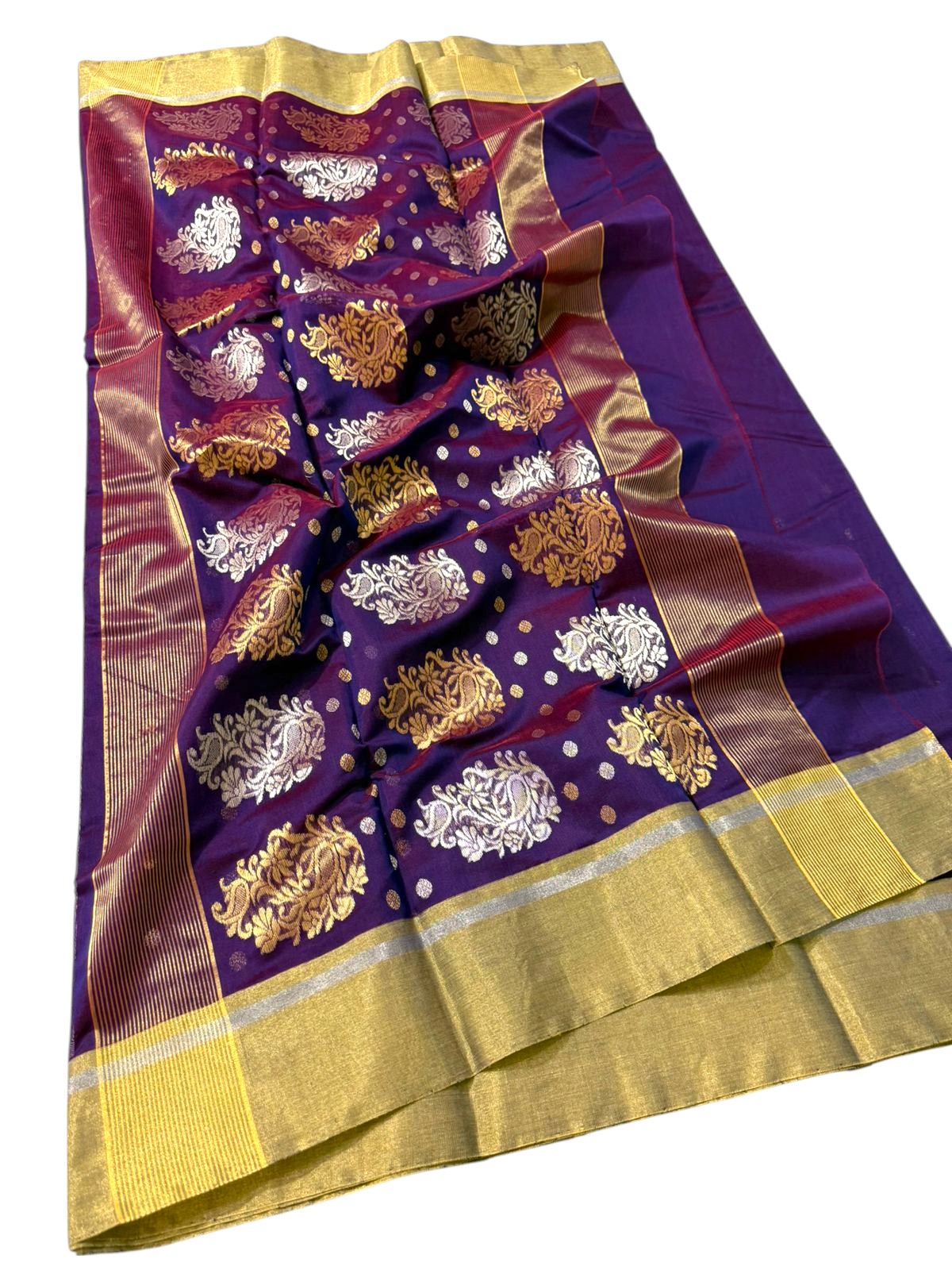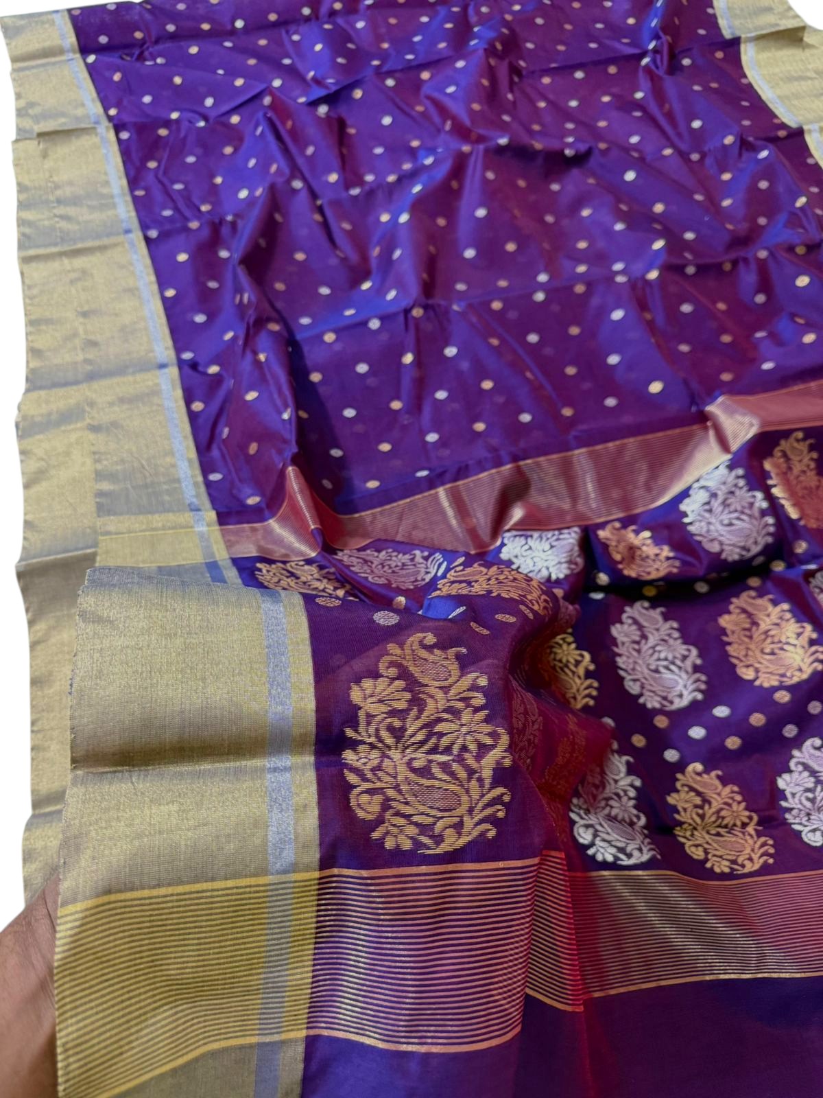 All over silver golden zari buti and golden zari plan border silver golden zari buta pallu work