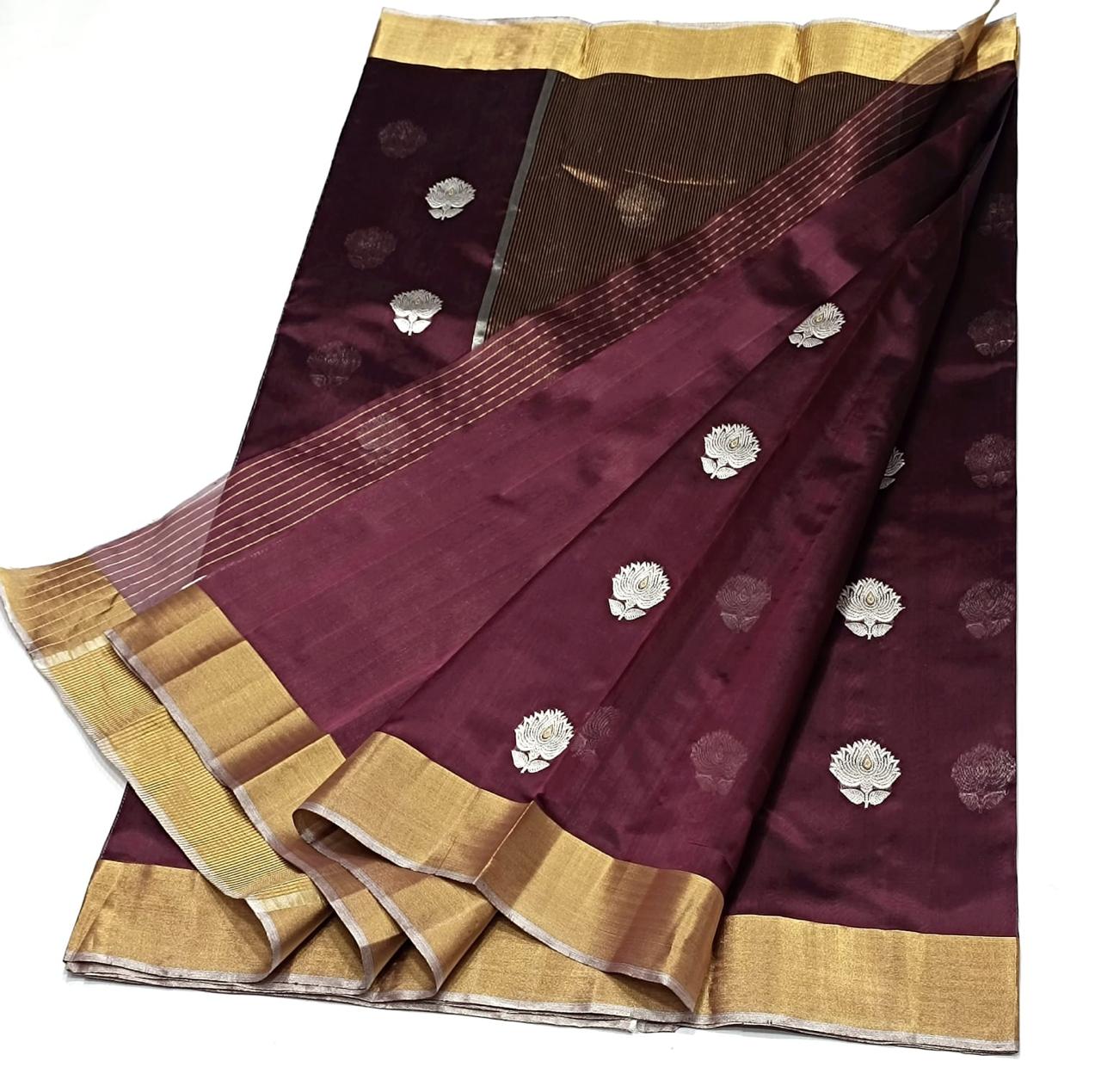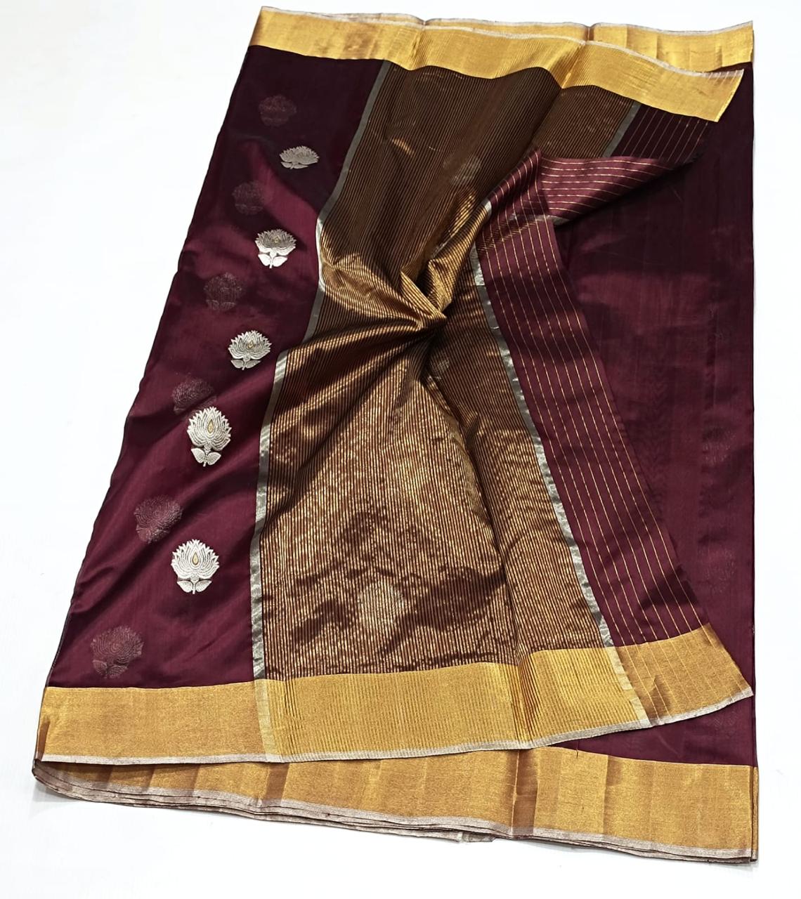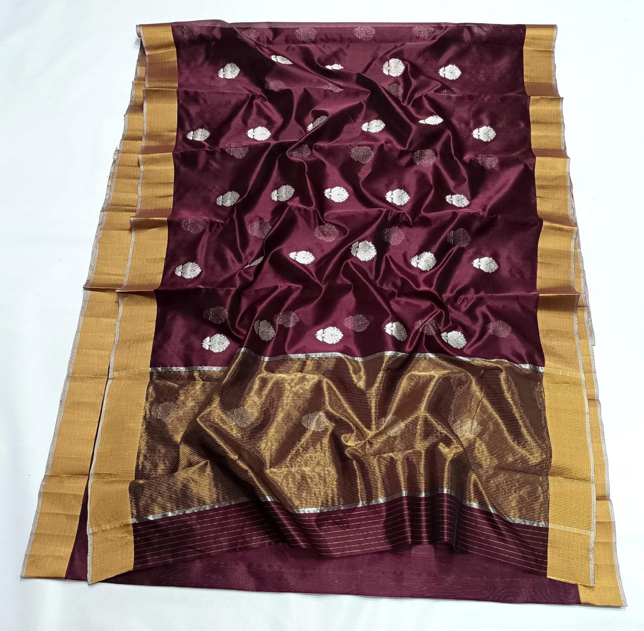 Handloom Weaving: Authentic Chanderi sarees are traditionally handwoven, which contributes to their unique texture and the precision of the motifs. You might find slight irregularities that are characteristic of handloom work.