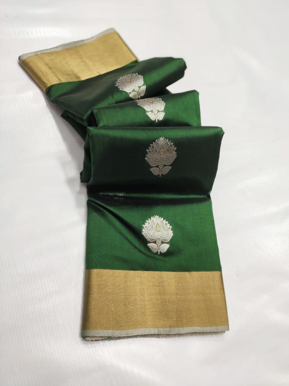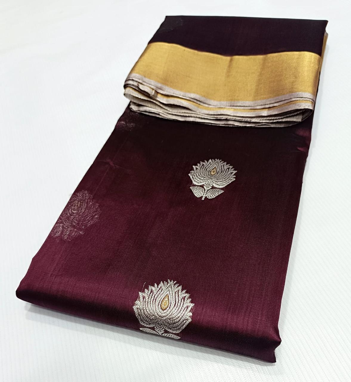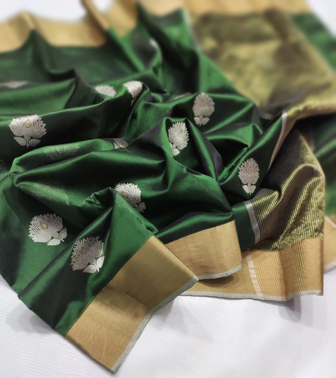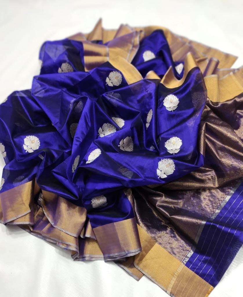 Handloom Weaving: Authentic Chanderi sarees are traditionally handwoven, which contributes to their unique texture and the precision of the motifs. You might find slight irregularities that are characteristic of handloom work.
