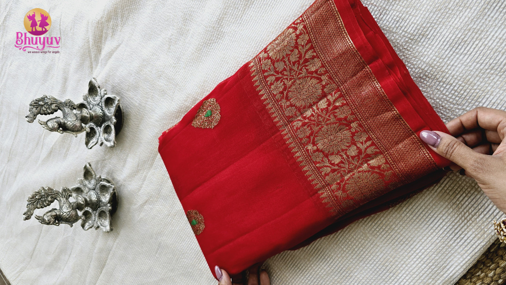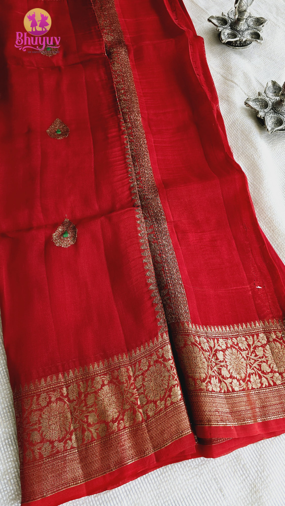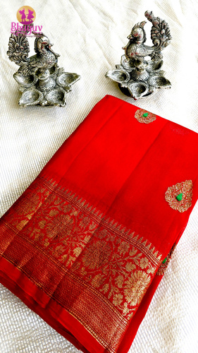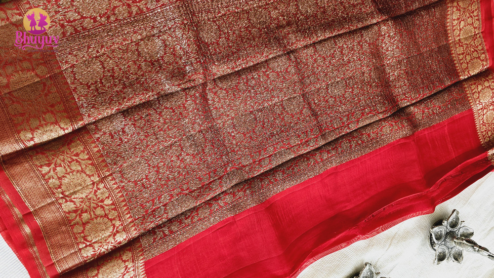 Pure Banaras Kora Organza Handloom Kadwa Weave Silk Saree