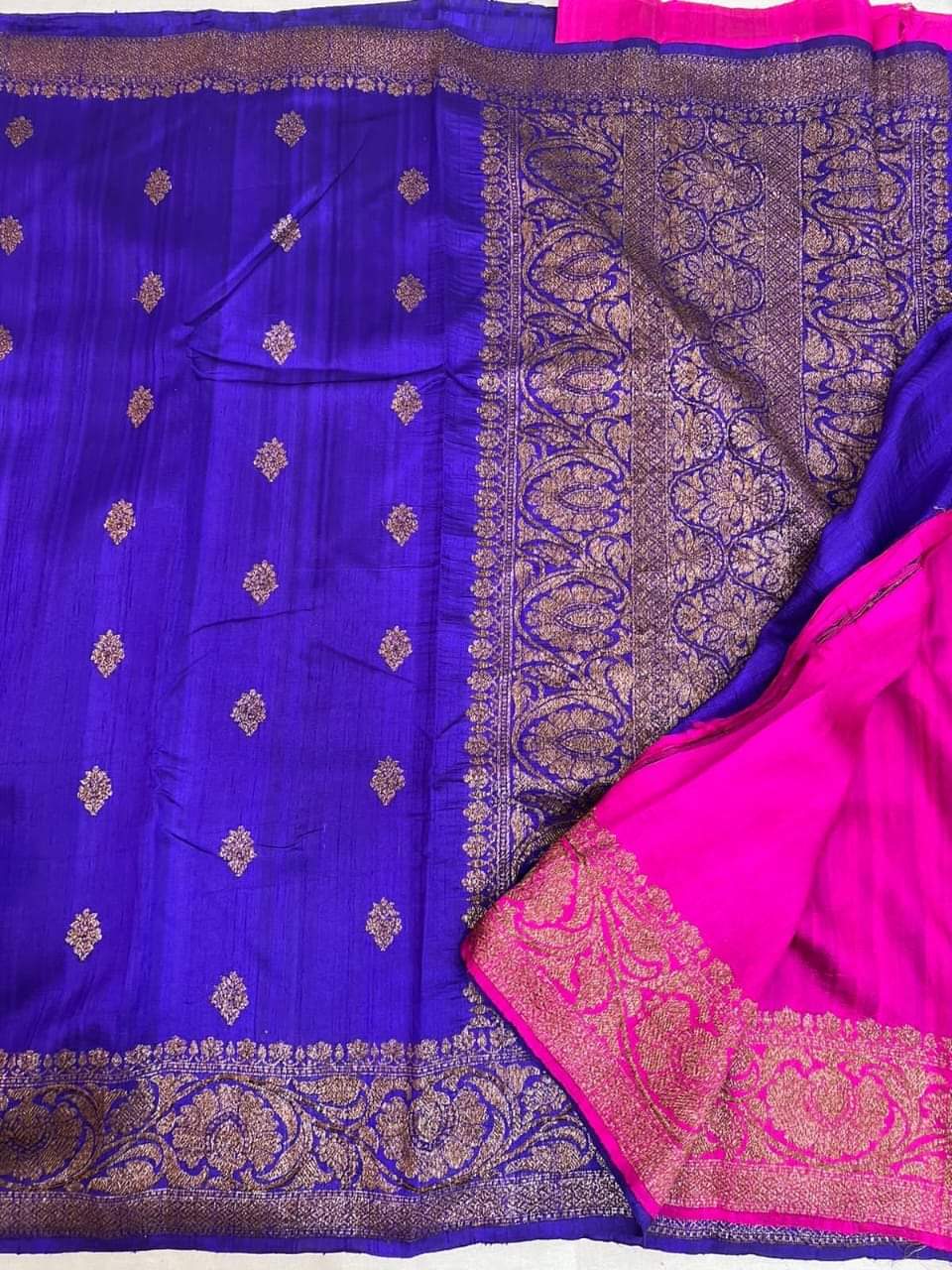Craftsmanship: Handloom Weaving – Expertly crafted by skilled artisans using traditional Banarasi weaving techniques, ensuring a masterpiece of intricate patterns and mot