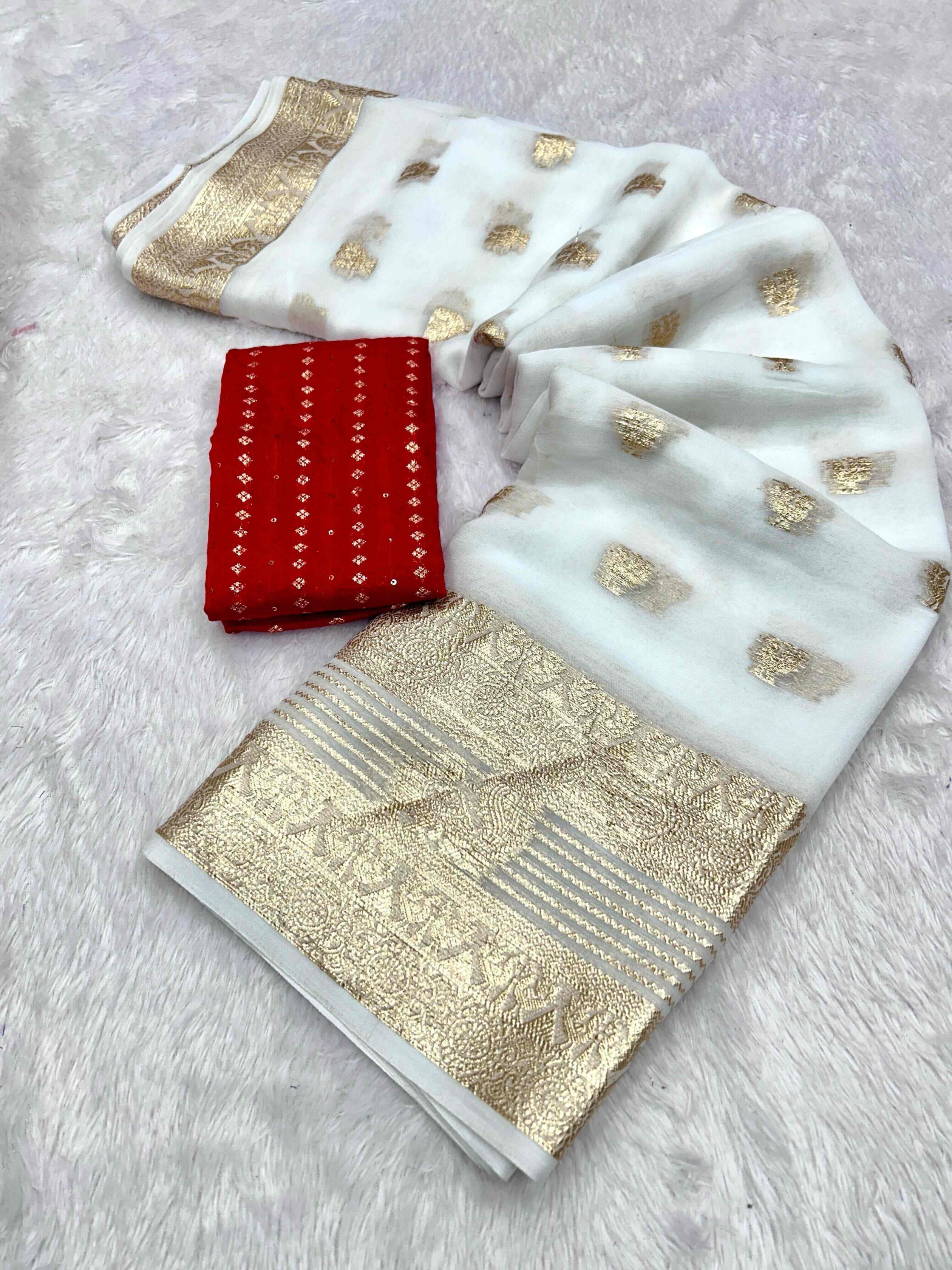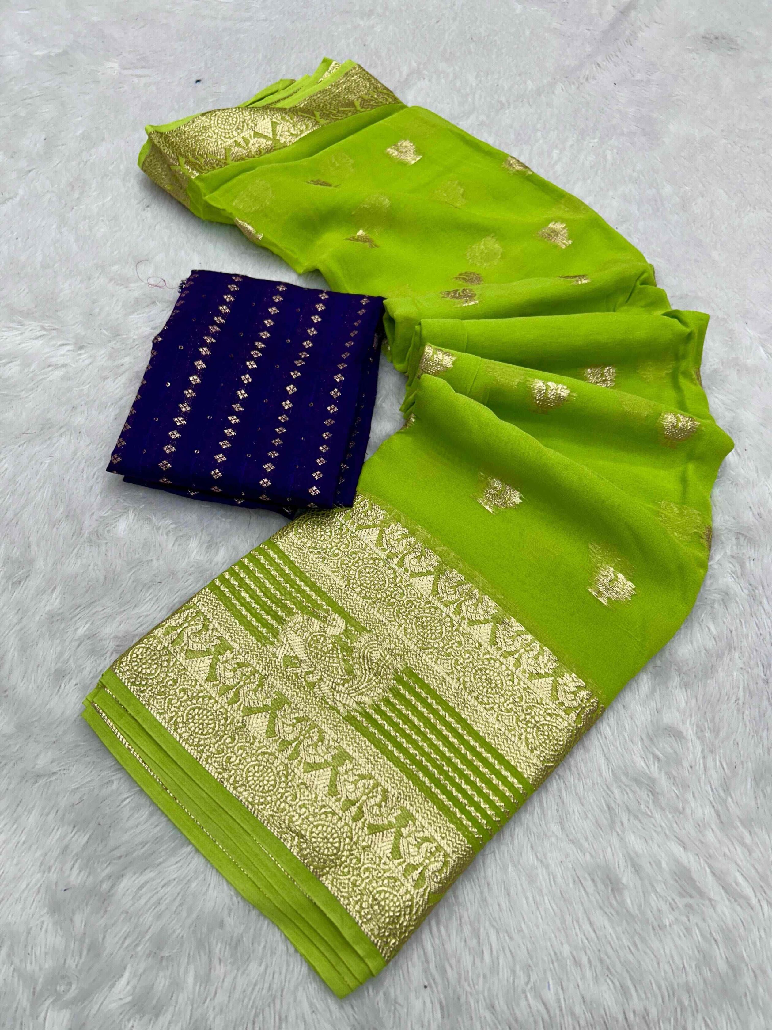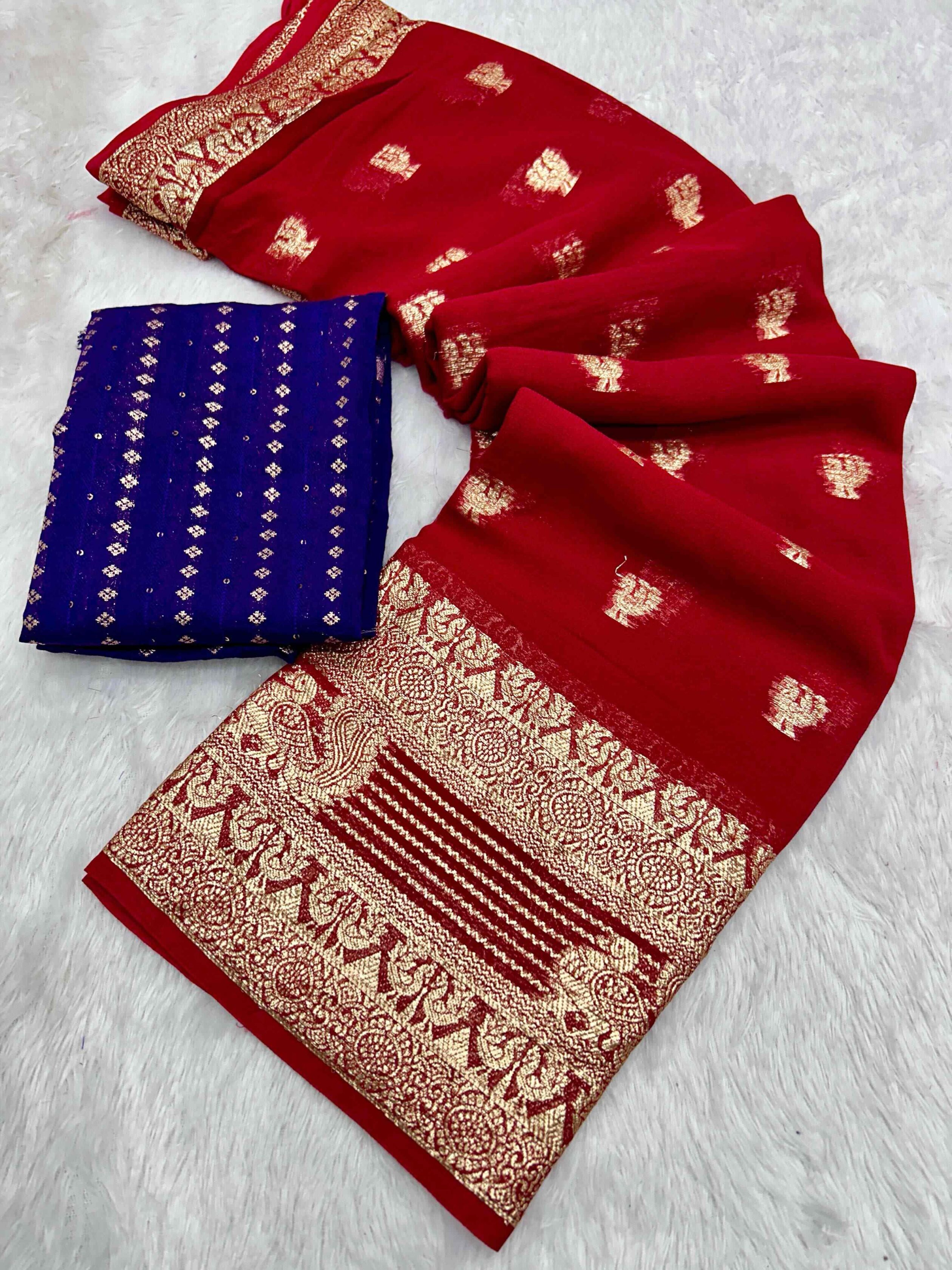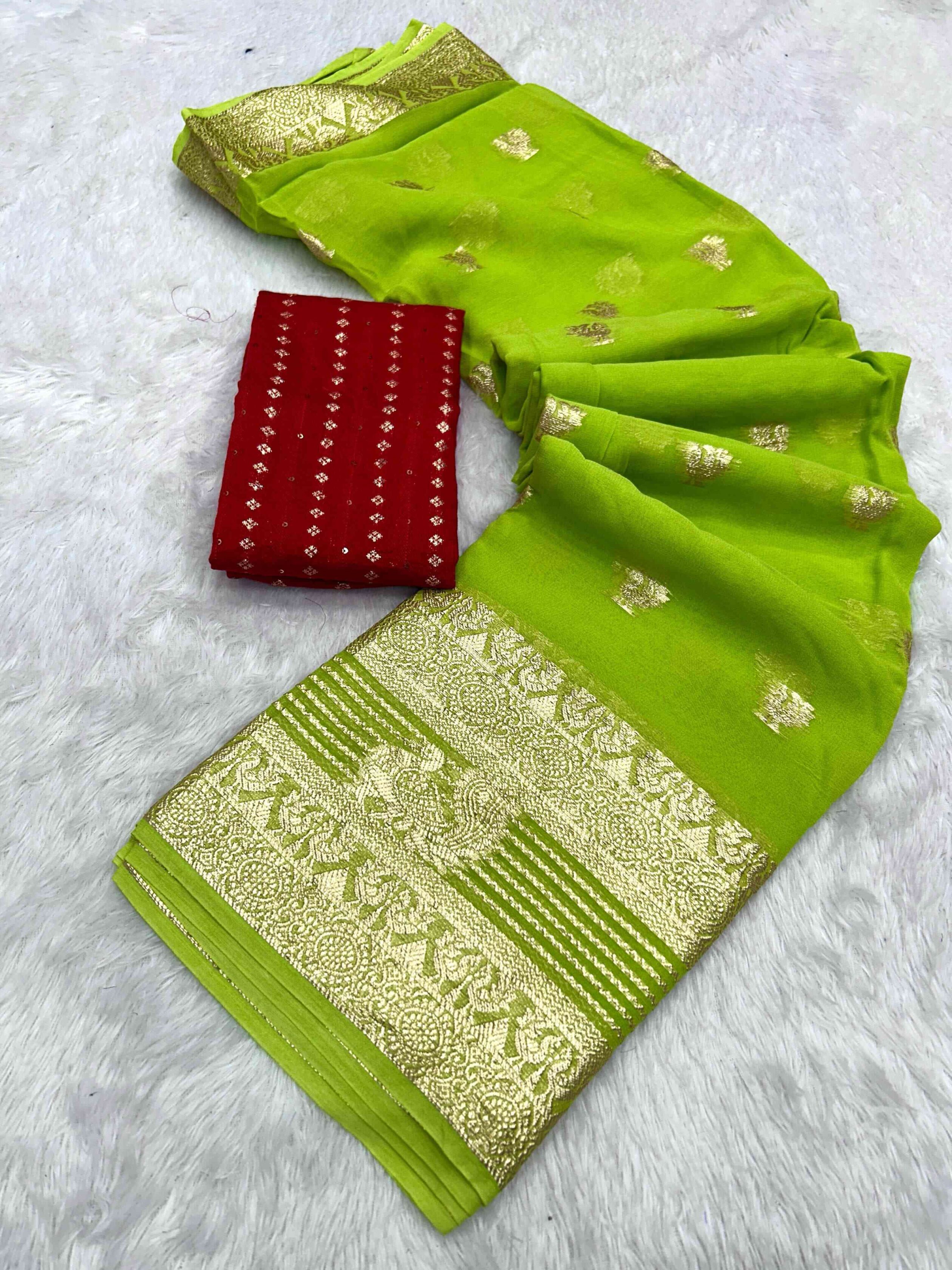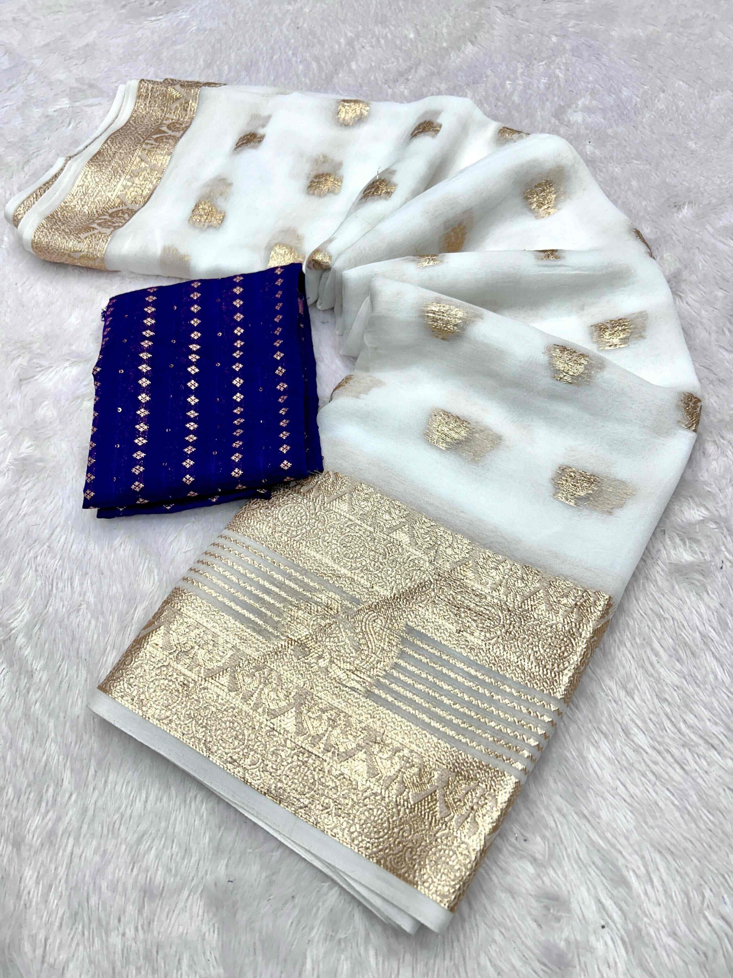Viscose Georgette Saree With Banarasi Dola Silk Blouse